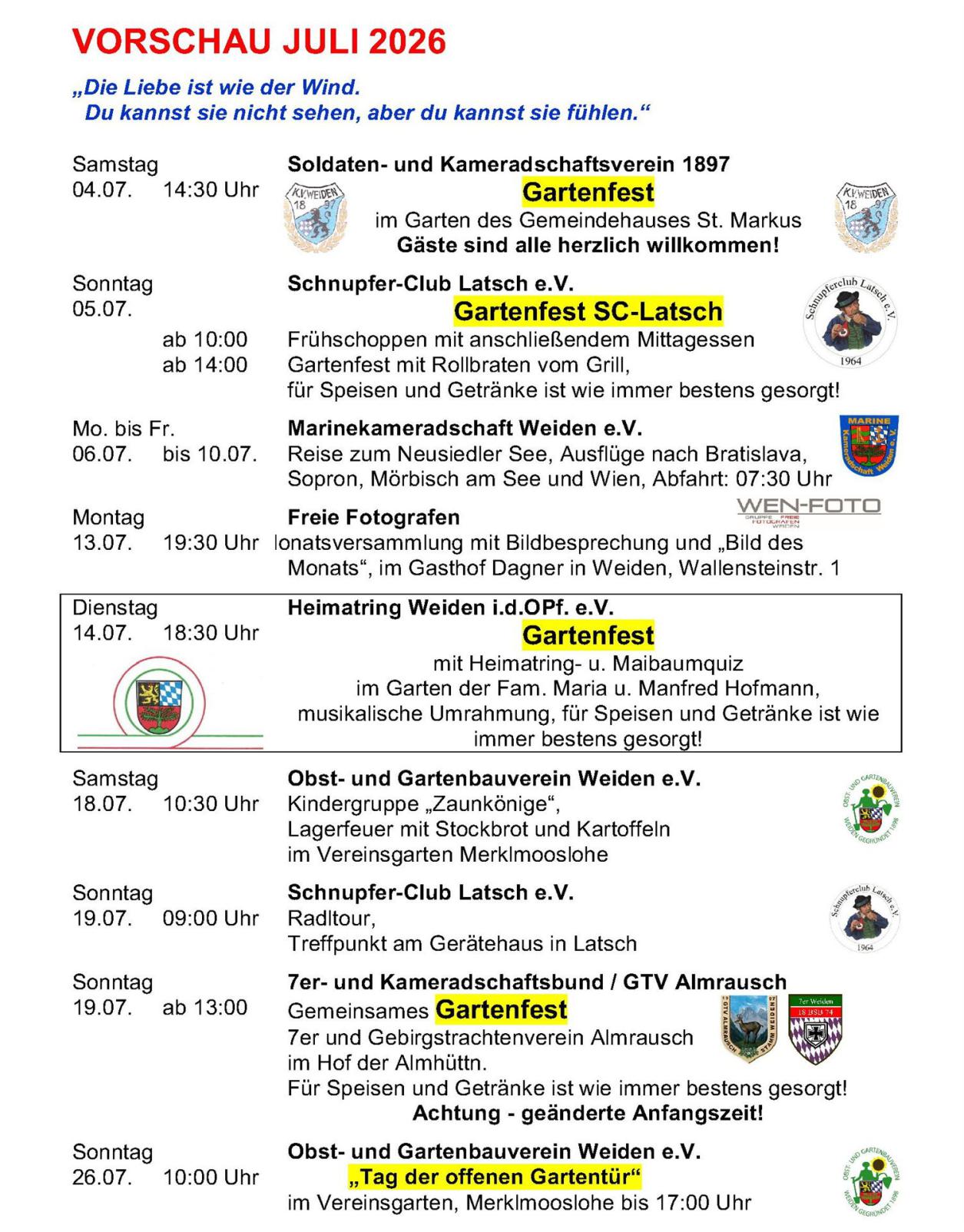 Vereinstermine